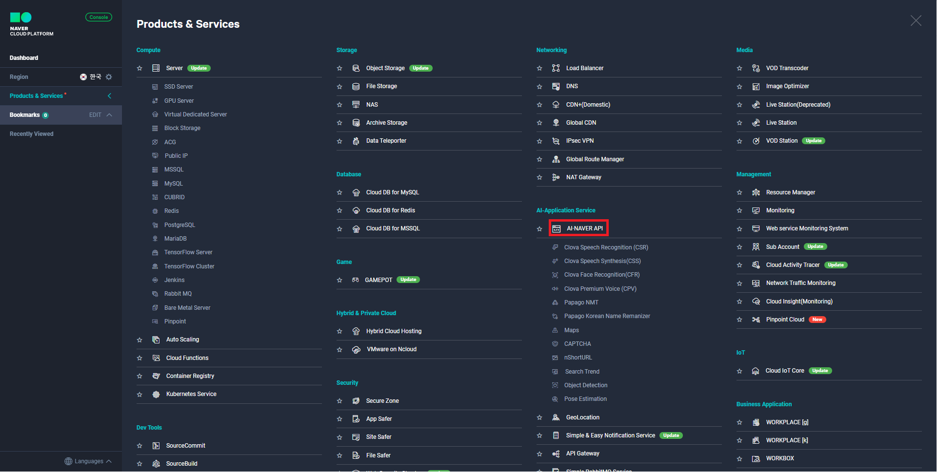 입력을 완료하고 나면 위와 같은 화면이 나오는데 Products & Services 메뉴를 클릭한다.