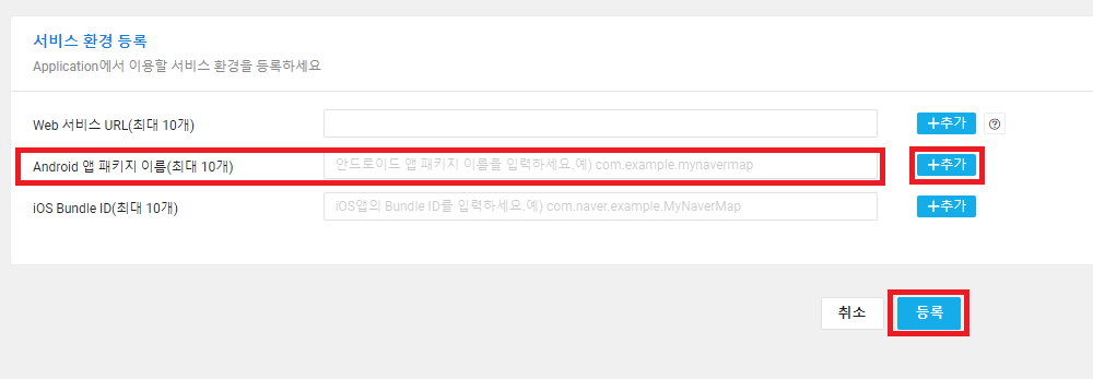 Android studio의 package 명을 Android 앱 패키지 이름에 작성한 뒤